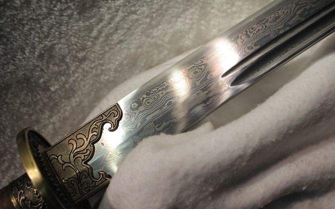 花纹钢凤凰朝阳清刀,有点太长了啊