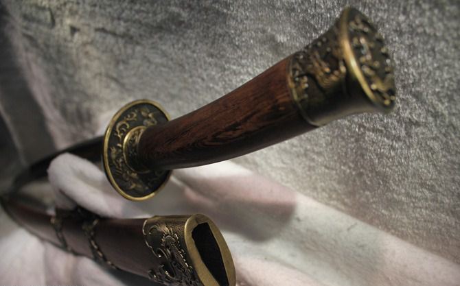 花梨木做的刀柄和刀鞘,是黄花梨吗?呵呵,应该不是