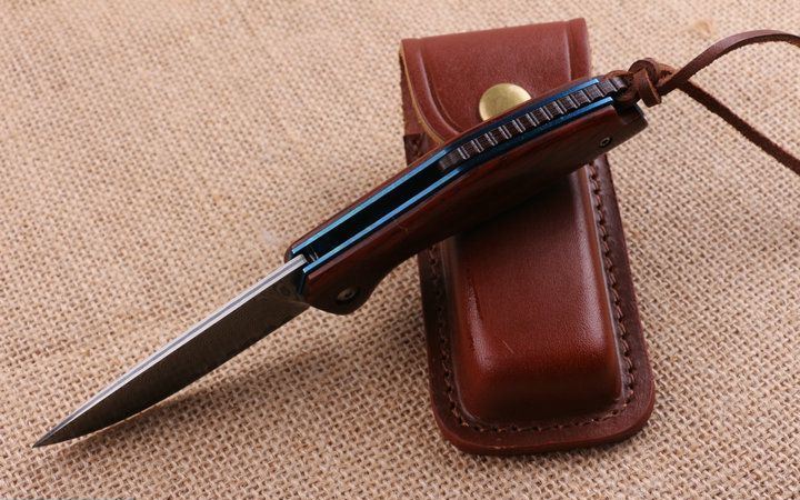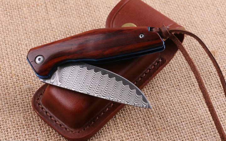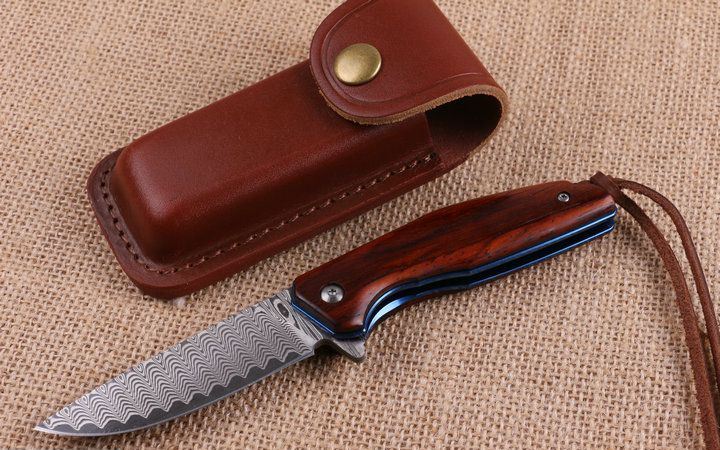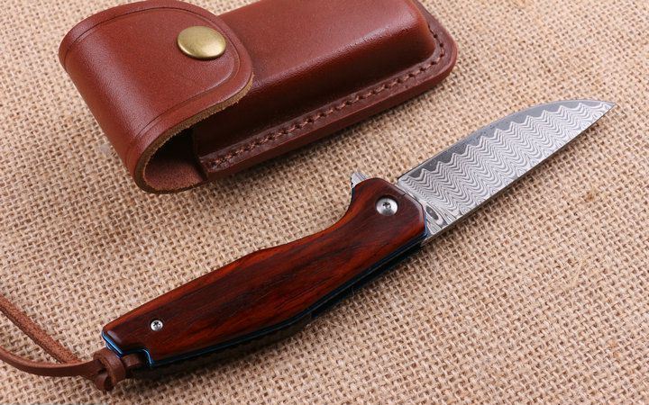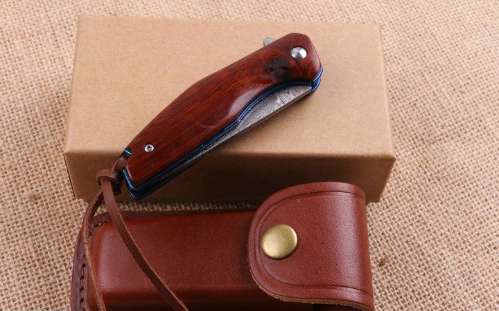 托马斯大马士革小龙女黄檀木柄折刀 全 长: 18.1cm 刃 长: 8cm 柄 长:10.1cm 硬 度: 59-60HRC 刃 厚: 0.3cm 重 量: 221克含包装 表 面: 纯手工制造 柄 材: 黄檀木 刃 材:大马士革钢 刀刃纹路各异,以实物为准 其 他: 牛皮套礼品盒,刃口锋利 ,轻巧飘亮,送人最佳的选择。