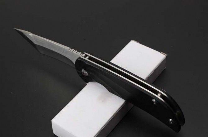 G10柄小旋风快开折刀 全长:20.3cm 刃长:8.5cm 柄长:11.5cm 刃厚:3.1mm 刃宽: 2.6cm 刃材: 7Cr13MoV 硬度: 57HRC 重量: 150克 柄材: 钢柄+G10 表面处理:拉丝刃面超镜光