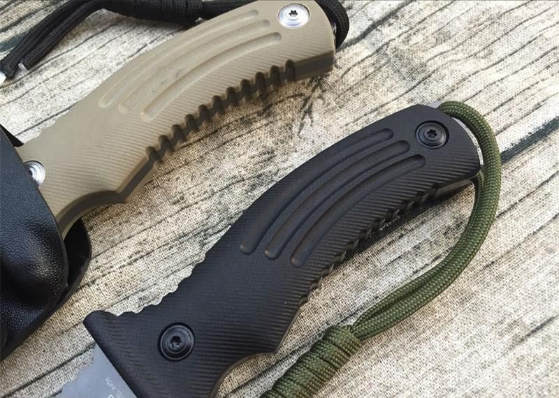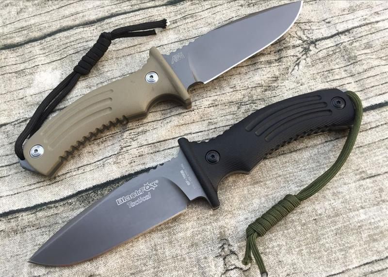 意大利BF-700狐狸直刀(黑色、沙漠色) 全长:235mm 刃长:118mm 柄长:123mm 刃宽:35mm 刃厚:5mm 刃材:D2(深冷处理) 硬度: 58-59度 柄材:G10 重量:380g 表面:灰钛