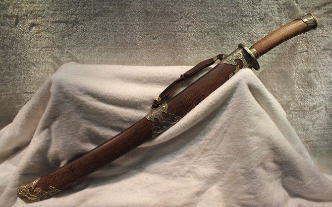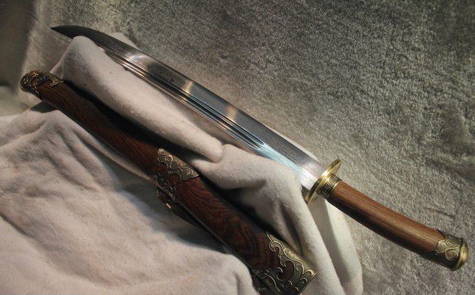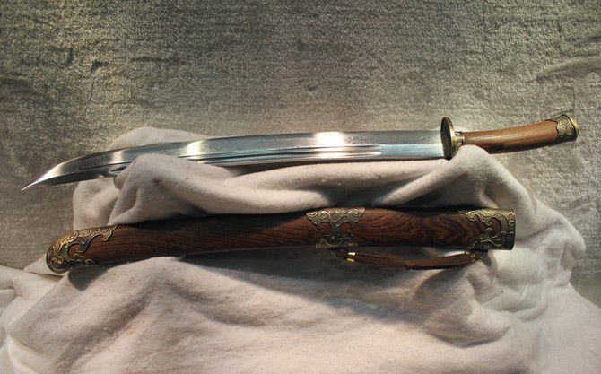 全长:79cm 刃长:53cm 刃宽:3.7cm 刃厚:0.78cm 刃材:百炼花纹钢 柄长: 16.5cm 重量:1400克(含包装) 鞘材:梨花木、合金 柄材:梨花木、合金 硬度区间:59—60HRC 性能:手工精细研磨全开锋,削纸断竹 包装: 锦盒 备注:手工产品存在误差,规格仅供参考,请以实物为准! 温馨提示:不配刀架