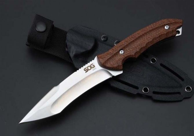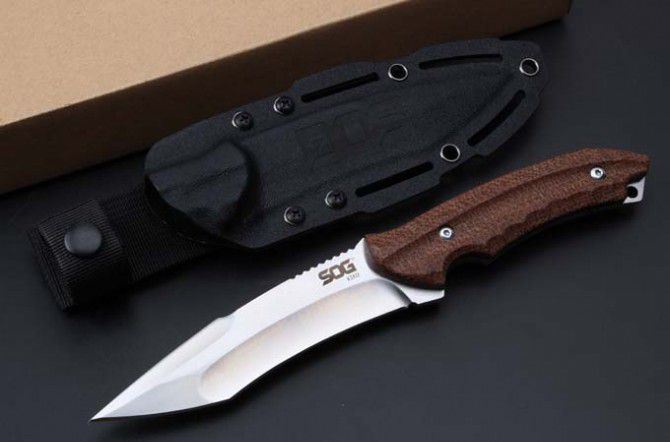 SOG美国哨格KU-2001几何头全刃战术直刀 全长:25.5cm 刃长:13cm 柄长:11.5cm 刃厚:0.5cm 刃宽:3cm 刃材:AUS-8 柄材:麻纤CNC成型 硬度:59-60HRC 净重:480克