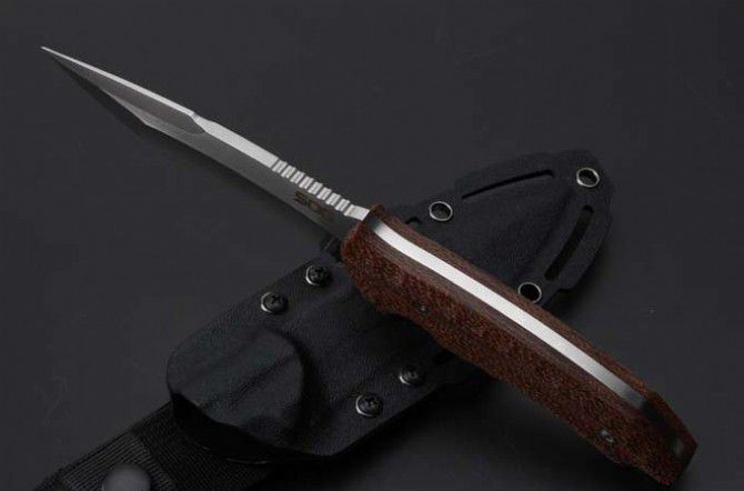 SOG美国哨格KU-2001几何头全刃战术直刀 全长:25.5cm 刃长:13cm 柄长:11.5cm 刃厚:0.5cm 刃宽:3cm 刃材:AUS-8 柄材:麻纤CNC成型 硬度:59-60HRC 净重:480克 刀鞘:战术K鞘(进口Kydex板)