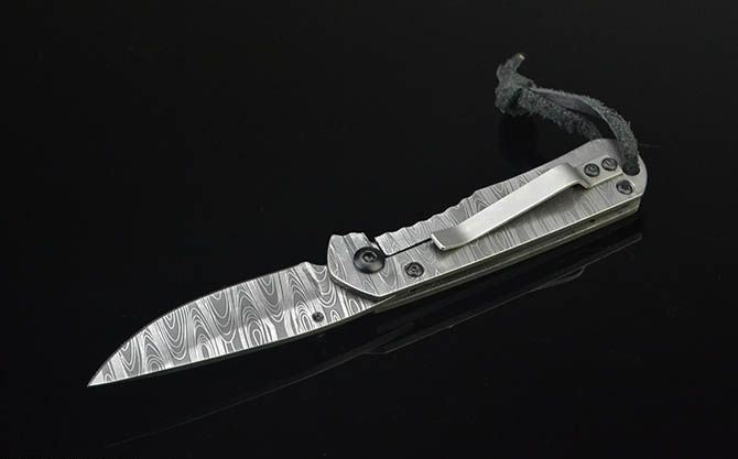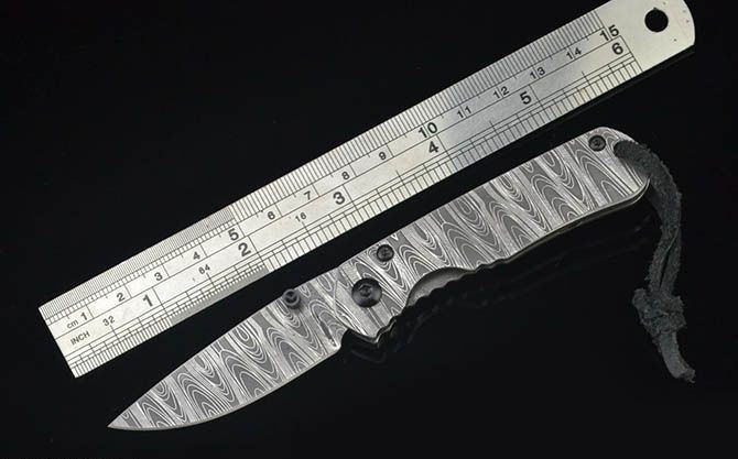 仿大马士革波浪纹GC1453E小沙折刀 全 长: 13.8cm 刃 长: 5.5cm 刃 宽: 2cm(最宽处) 柄 长: 8cm 硬 度: 56HRC 刃 厚: 0.2cm 重 量: 55克(含包装) 表 面: 仿大马士革波浪纹 刃 材: 3铬13 柄 材: 3铬13 锁 闭: 一体线锁