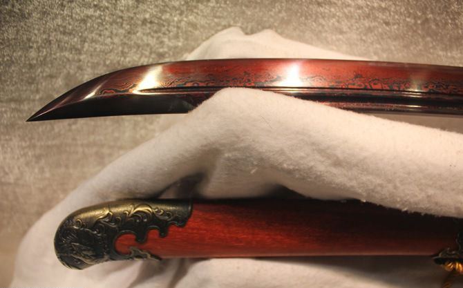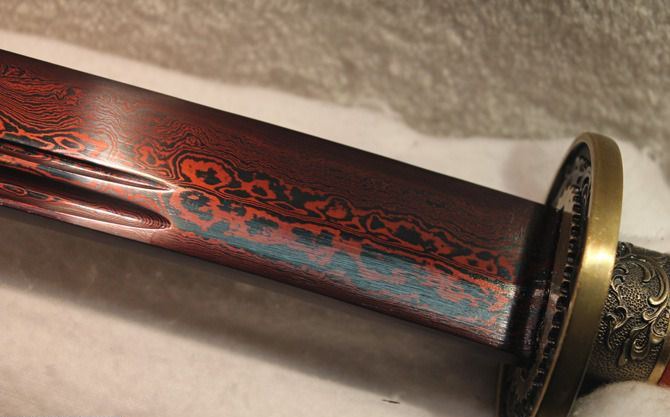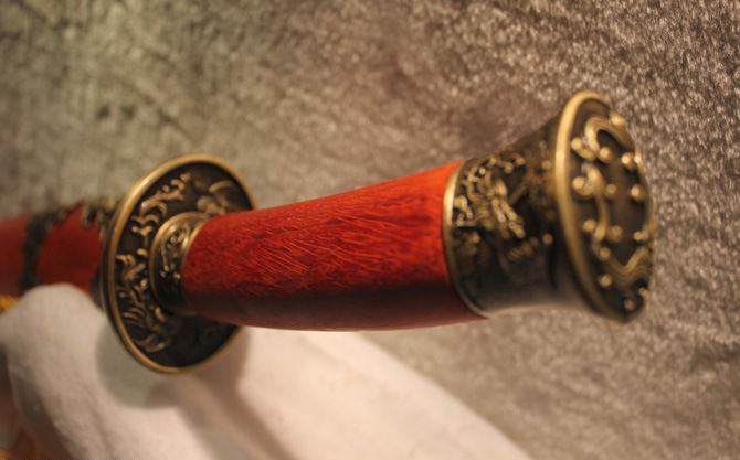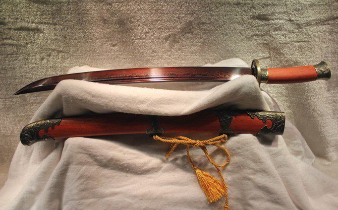 全长:68cm 刃长:51cm 刃宽:3.7cm 刃厚:0.8cm 刃材:百炼花纹钢 柄长: 16cm 重量:1760克(含包装) 鞘材:红木 装材:精雕龙纹仿铜 柄材:红木 硬度区间:58HRC 性能:手工精细研磨全开锋,削纸断竹砍铁丝 包装: 锦盒 备注:手工产品存在误差,规格仅供参考,请以实物为准! 温馨提示:不送刀架