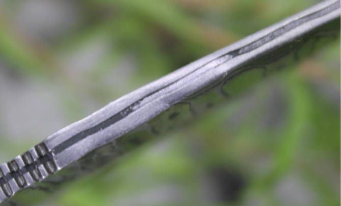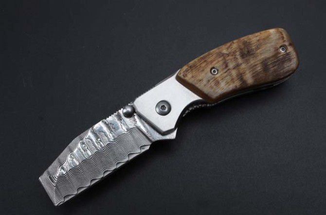 哥伦比亚—大马士革钢4020折刀 全长:13.5cm 刀刃:5.3cm 刃厚:0.28cm 刃宽:2.4cm 柄长:8cm 硬度:58HRC 净重:100g 材料:大马士革钢 柄材:羊角 锁型:线锁