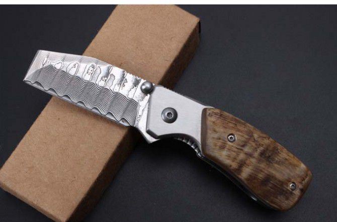 哥伦比亚—大马士革钢4020折刀 全长:13.5cm 刀刃:5.3cm 刃厚:0.28cm 刃宽:2.4cm 柄长:8cm 硬度:58HRC 净重:100g 材料:大马士革钢 柄材:羊角