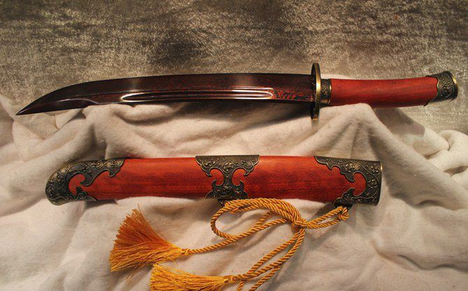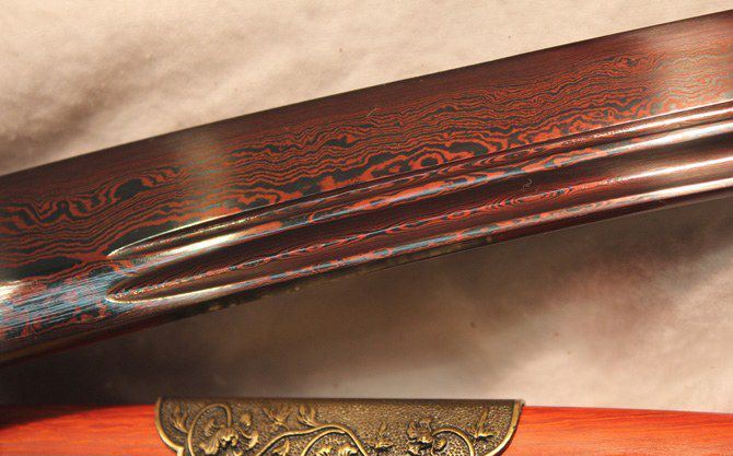 全长:49.5cm 刃长:33cm 刃宽:3.7cm 刃厚:0.74cm 刃材:百炼花纹钢 柄长: 15.8cm 重量:1200克(含包装) 鞘材:红木 装材:精雕龙纹仿铜 柄材:红木 硬度区间:58HRC 性能:手工精细研磨全开锋,削纸断竹砍铁丝 包装: 锦盒 备注:手工产品存在误差,规格仅供参考,请以实物为准! 温馨提示:不送刀架