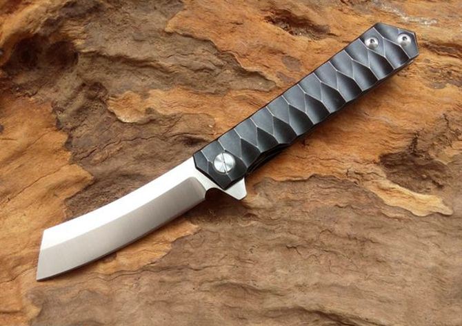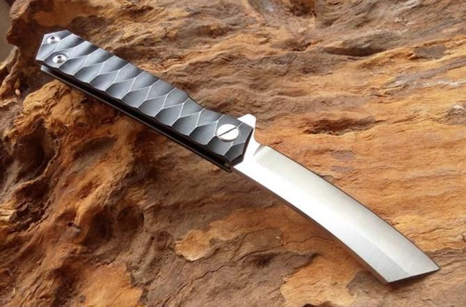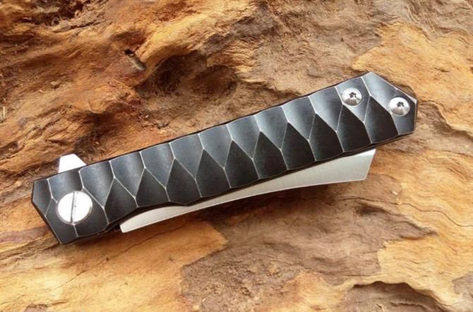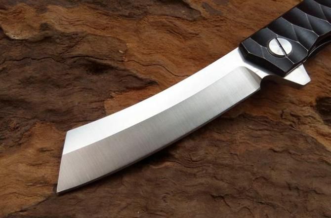 神武2-钛柄折刀 全 长:208mm 刃 长:85mm 柄 长:125mm 刃 宽:21mm 刃 厚:3.5mm 刃 材:D2 柄 材:TC4钛 硬 度:59-60HRC 重 量:120g