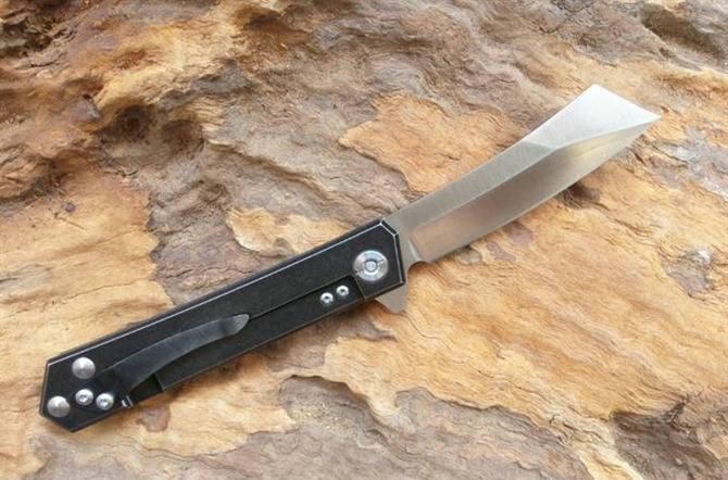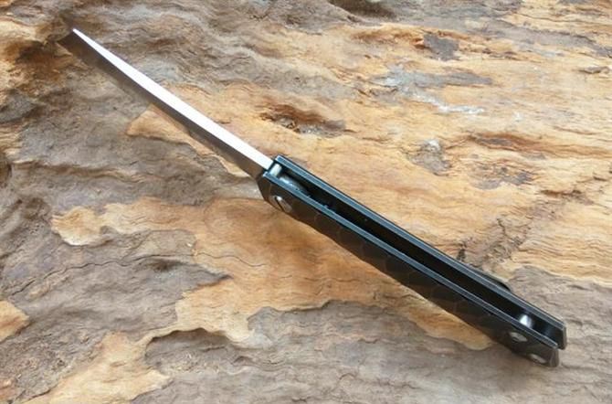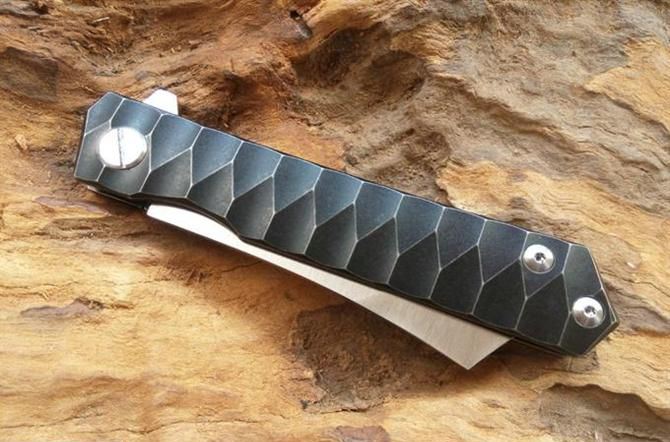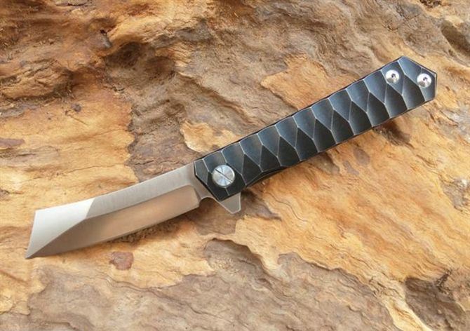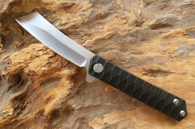 神武-钛柄折刀 全 长:208mm 刃 长:85mm 柄 长:125mm 刃 宽:21mm 刃 厚:3.5mm 刃 材:D2 柄 材:TC4钛 硬 度:59-60HRC 重 量:120g