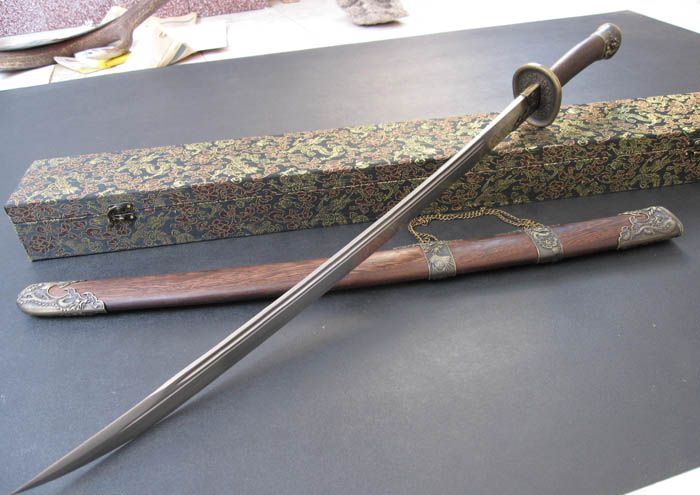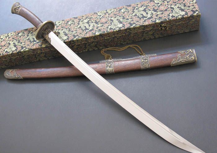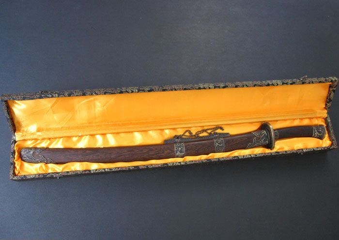 鞘材:名贵花梨,精镶龙凤纯铜装具