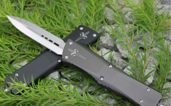 超精仿微技术暴龙直出弹簧刀(黑色、灰色柄) 全 长: 24.5cm 刃 长: 9.5cm 刃 厚: 3.2mm 刃 宽: 2.2cm 柄 长: 14cm 刃 材: 440C (顶级钢材) 硬 度: 58-60HRC (超高硬度,非常锋利) 毛 重: 320g(含包装) 表 面: 拉丝 柄 材: 航空铝 锁 闭: 直出弹簧刀 包 装: 彩盒、,尼龙套 备 注: 带玻璃锥、腰夹