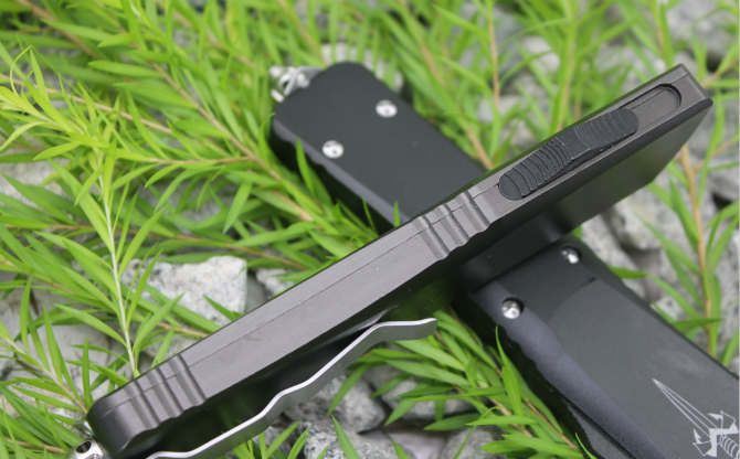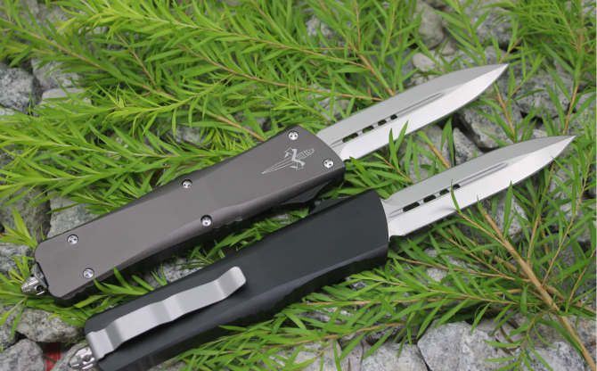 超精仿微技术暴龙直出弹簧刀(黑色、灰色柄)