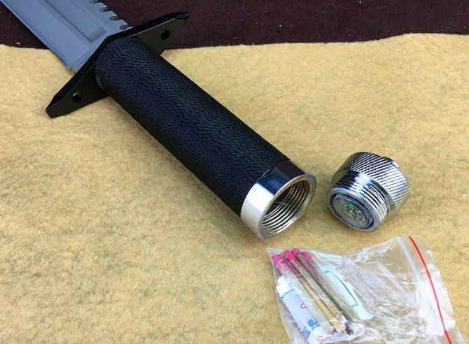 全长:34cm 刃长:18.5cm 柄长:15cm 刃厚:4.5mm 刃最宽: 4cm 刃材: 3Cr13Mov 柄材: 采用无缝不锈钢管,由加强尼龙绳绕扎,求生工具包装入刀柄内,铝抛光钻石纹尾盖。 硬度: 57HRC 净重:500克(含皮套) 毛重:520克(含纸盒和皮套) 表面处理: 喷砂/发黑