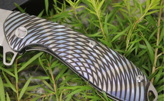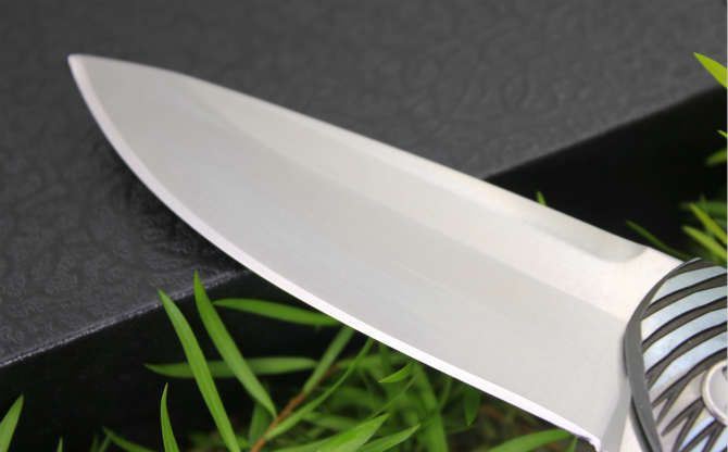 最新的拔手钉快开方式,开合更顺畅,全钛刀柄,刀片采用D2材料,全手工打磨,线条流畅;最高要求的精准的外六角止位钉,更显工艺高超;内嵚式合金锁位片,使刀柄表面光滑,给人最美观感!这就是全新的