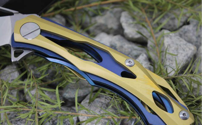 变型金刚黑鸟24CM折刀 全长:24mm 刃长:10mm 柄长:140mm 刃宽:30mm 刃厚:4mm 刃材:8铬18钼(深冷处理) 重量:450g(含包装物) 硬度:58-61HRC 表面:拉丝 柄材:手柄全钢手柄电脑椤缕空、底骨全钢电镀处理。 刀夹:全钢 锁型:分体插入锁杆式线锁。 螺丝:所有螺丝420不锈钢、硬度HRC45、全CNC精雕加工。 结构:分体插入锁杆式线锁结构、锁刀接触镶嵌合金粒、陶瓷定位珠、内置平面滚针轴承垫片