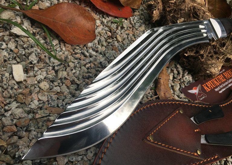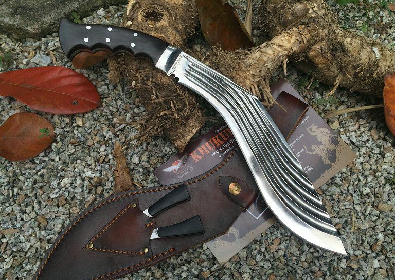 廓尔喀刀(又称尼泊尔军刀)此刀全手工制作一体龙骨,不要拿普通的弯刀来对比(老鼠尾手柄)不是一个档次的,我们秉承“高质优品”之宗旨,在选料时不惜成本,制作时精益求精,每一把都精品
