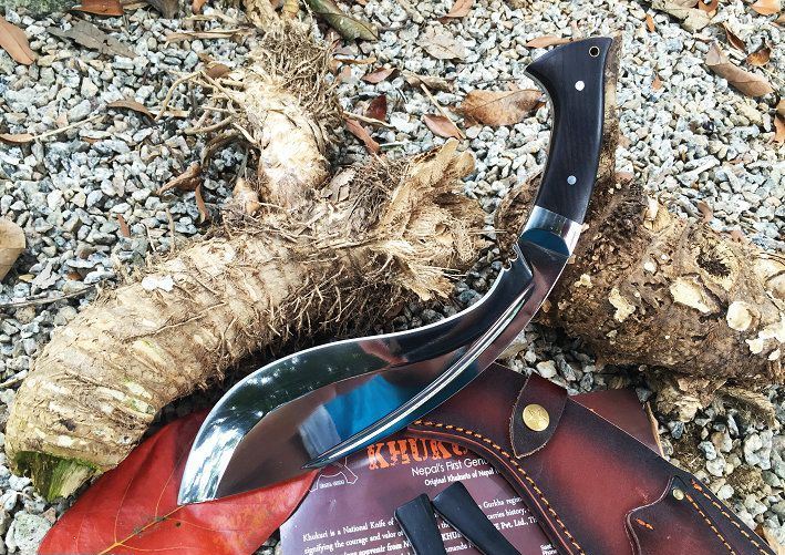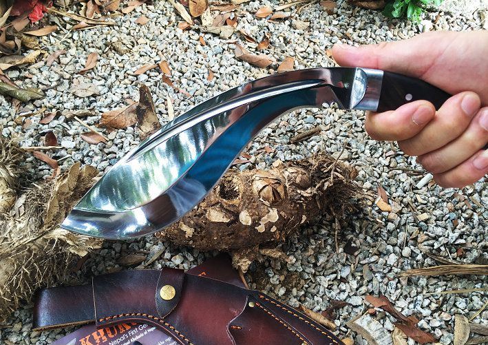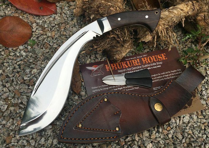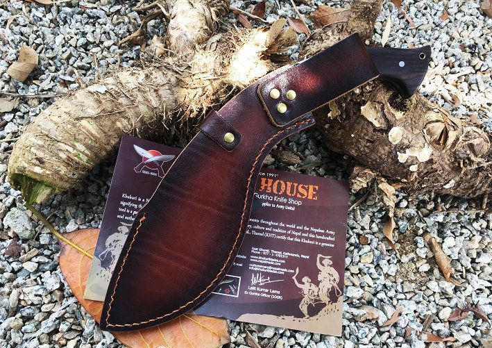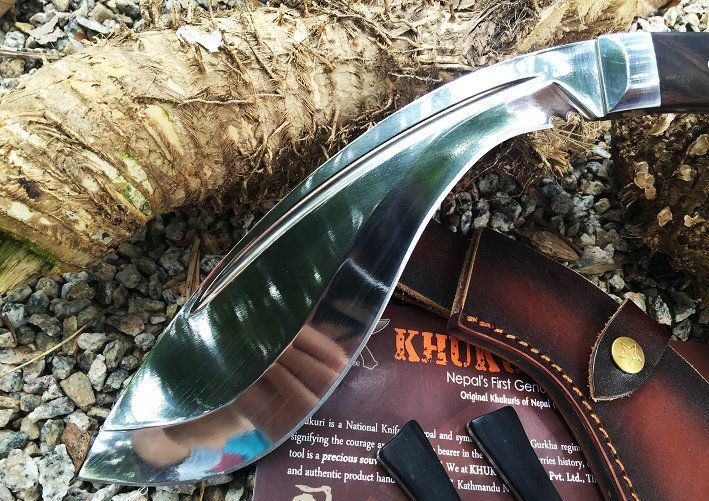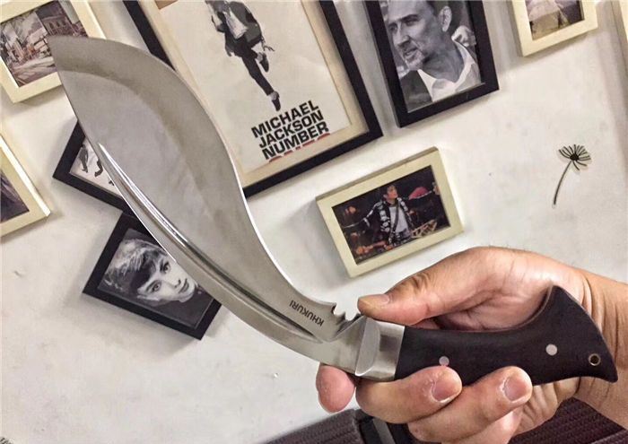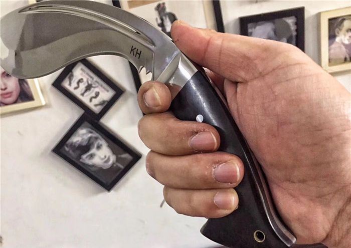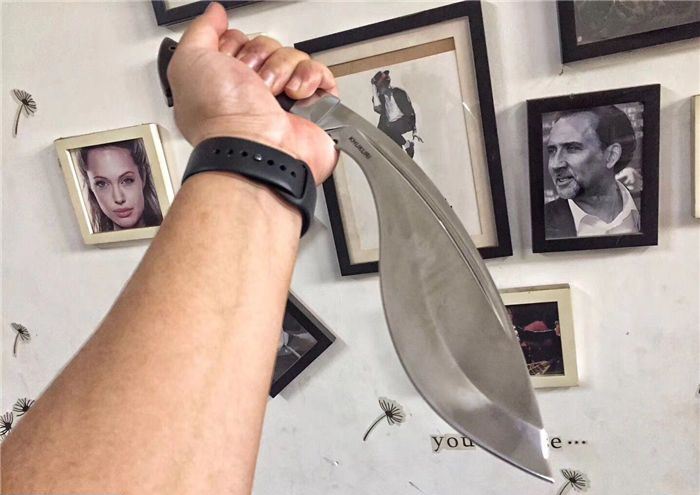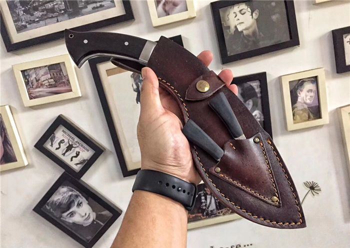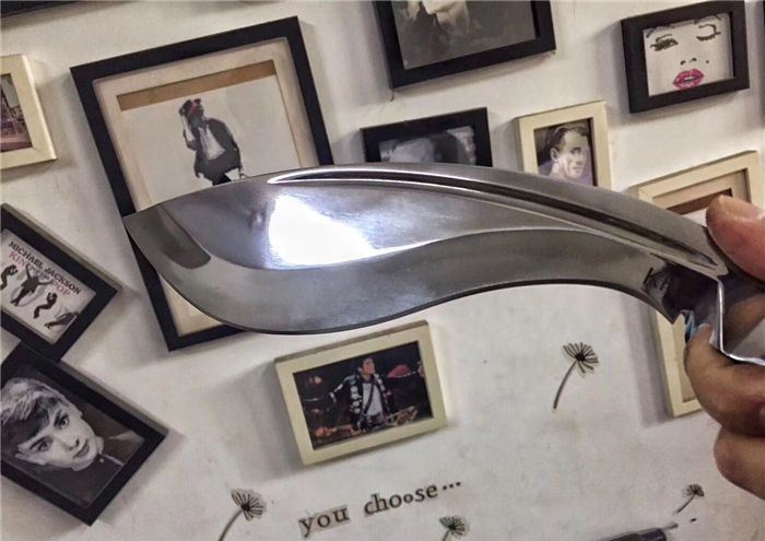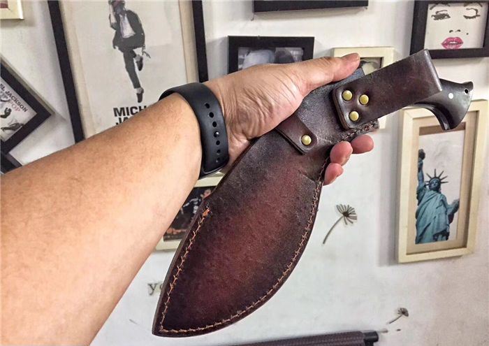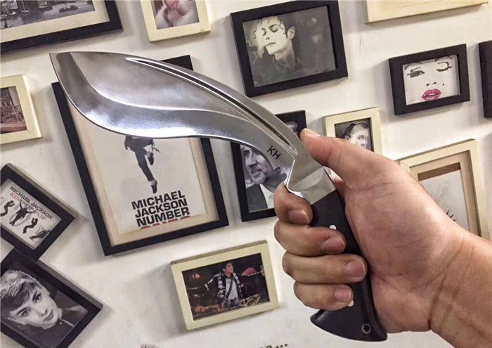 廓尔喀刀(又称尼泊尔军刀)此刀全手工制作一体龙骨,不要拿普通的弯刀来对比(老鼠尾手柄)不是一个档次的,我们秉承“高质优品”之宗旨,在选料时不惜成本,制作时精益求精,每一把都精品