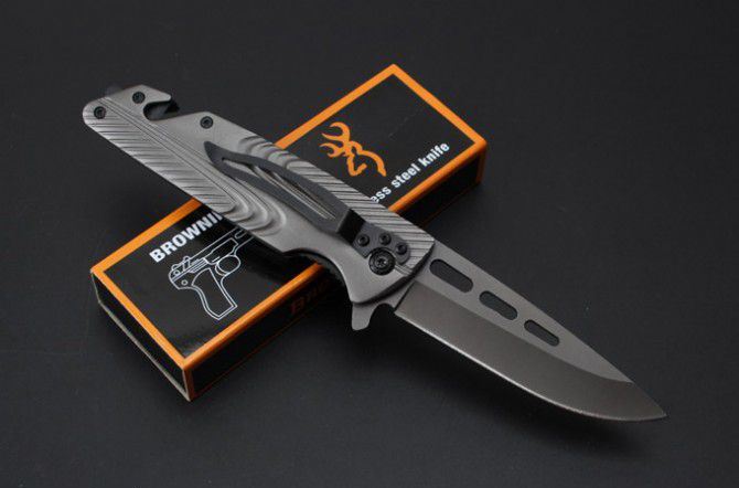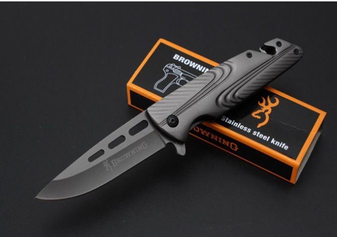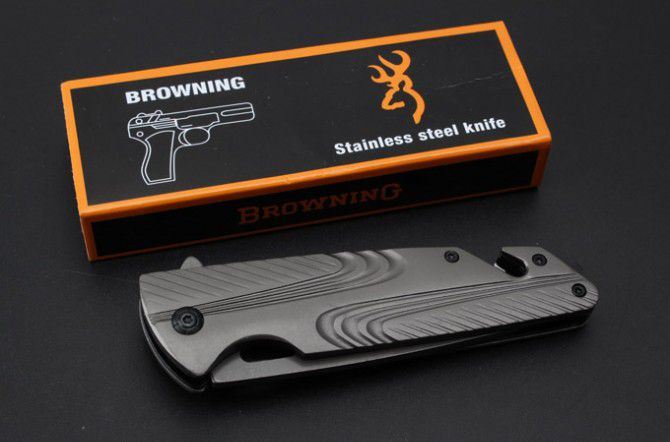 勃朗宁367快开折刀 全 长:210mm 刃 长:90mm 柄 长:120mm 刃 宽:26mm 刃 厚:2.9mm 刃 材:5Cr15Mov 重 量:235g(含包装) 硬 度:57HRC 表 面:灰钛 柄 材:钢柄 锁 型:快开 其 他:配彩盒