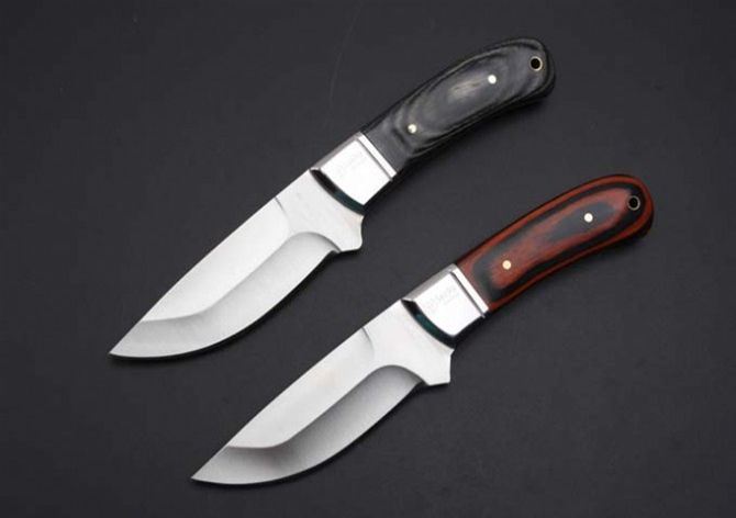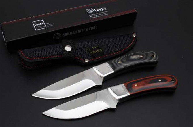 荣誉K91小猎刀(黑红柄、黑蓝柄) 全 长: 210cm 刃 长: 10.5cm 刃 宽: 3.3cm(最宽处) 柄 长: 106cm 刃 厚: 0.31cm 刃 材: 5Cr13Mov 硬 度: 56RHC(高硬度) 净 重: 234克(含套) 表 面: 砂光 柄 材: 钢头+彩木
