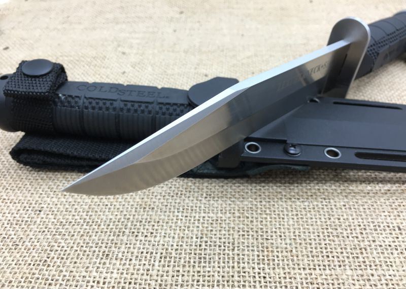 coldSteel冷钢39海路求生刃尖头夹磨版 全 长: 298mm 刃 长: 174mm 刃 材: D2 硬 度: 58-59HRC 表 面: 砂光/发黑 刃 厚: 5mm 柄 材: ABS 重 量: 325g 刃 鞘: Kydex鞘