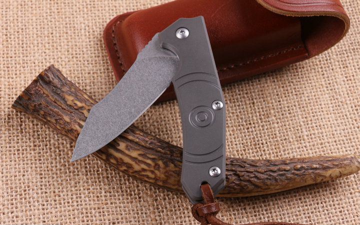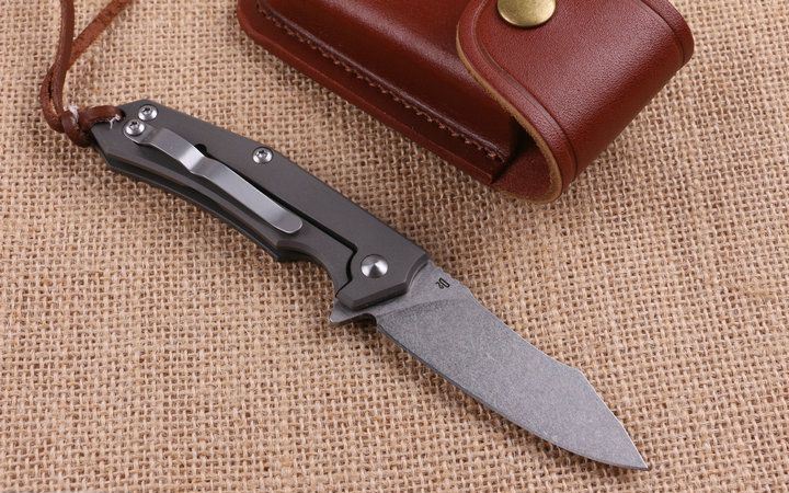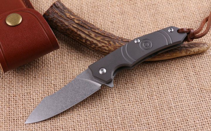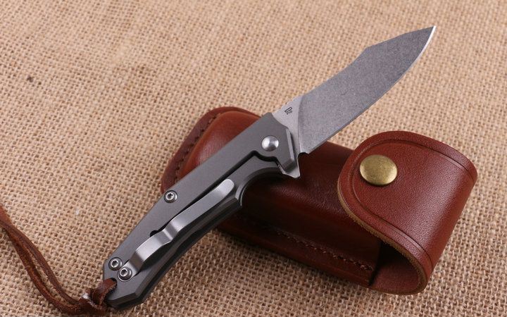 狼烟钛柄D2折刀 全 长:17.7Cm 刃 长:8.8Cm 柄 长:10Cm 刃 宽:2.2Cm 刃 厚:3.2mm 刃 材:D2 重 量:192g (含包装) 硬 度:58-60HRC 表 面:原大马士革纹 柄 材:钛柄 锁 型:侧锁