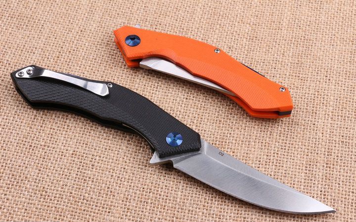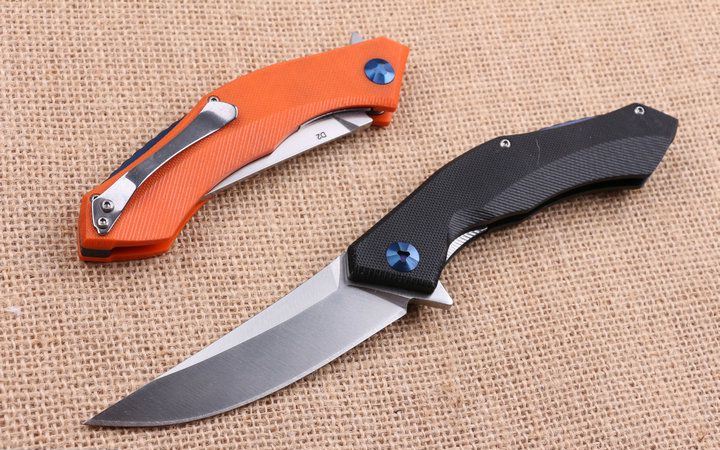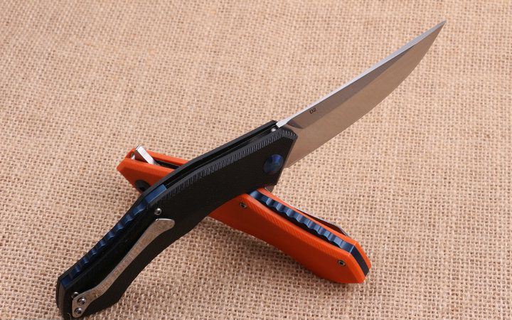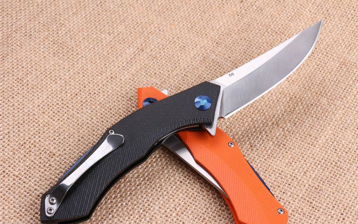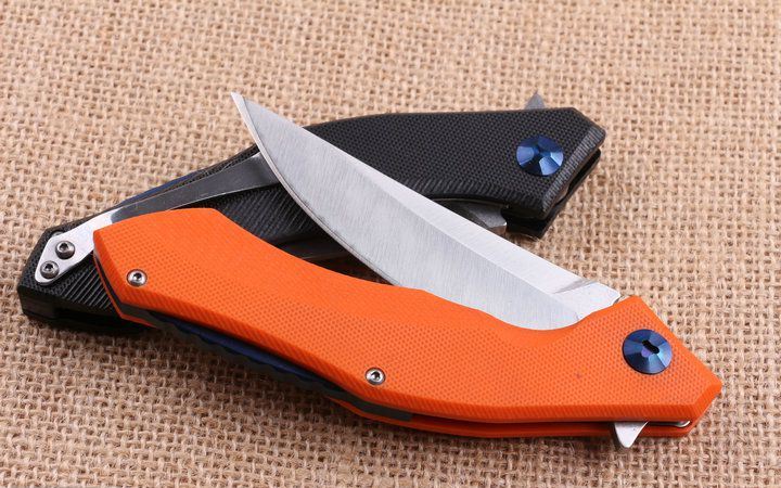 两色95熊头蓝月快开折刀钢锁版 全 长:21.8cm 刃 长:8.8cm 柄 长:13.8m 刃 宽:2.5m 刃 厚:3.8mm 刃 材:440 重 量:165g (含包装物) 硬 度:56-58HRC 表 面:精细沙光 柄 材:手柄G10和钢片经CNC精雕加工 刀 夹:不锈钢 锁 型:线锁 结 构:线锁结构,内置平面滚针轴承垫片 其 他:礼品盒盒.橙色,.黑色.两以任选,绝对是高品质