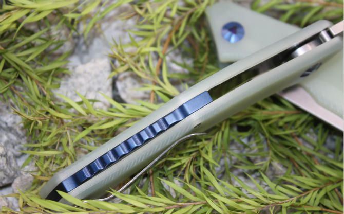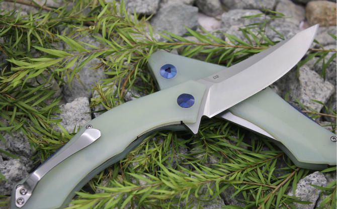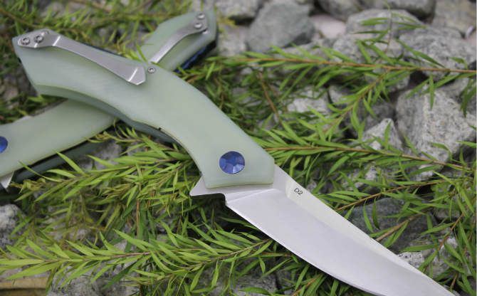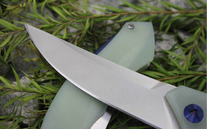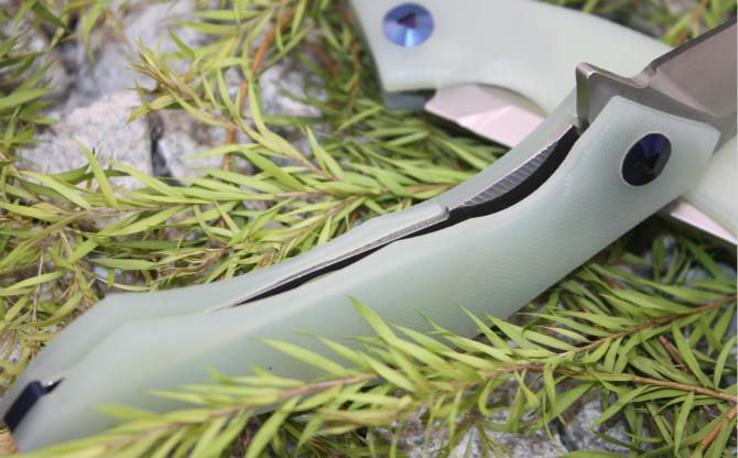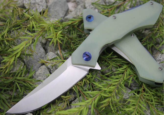 熊头蓝月弯刀浅绿色 全 长:220mm 刃 长:90mm 柄 长:130mm 刃 宽:26mm 刃 厚:4.0mm 刃 材:D2(深冷处理) 重 量:220g 硬 度:58-60HRC 表 面:沙光拉丝 柄 材:浅绿色G10柄 刀 夹:全钢 锁 型:分体组合锁杆式线锁 螺 丝:所有螺丝420不锈钢硬度HRC45,全CNC精雕加工 结 构:一体线锁。陶瓷定位珠,内置平面滚针轴承