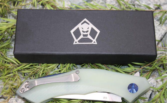 熊头蓝月弯刀浅绿色 全 长:220mm 刃 长:90mm 柄 长:130mm 刃 宽:26mm 刃 厚:4.0mm 刃 材:D2(深冷处理) 重 量:220g 硬 度:58-60HRC 表 面:沙光拉丝 柄 材:浅绿色G10柄 刀 夹:全钢 锁 型:分体组合锁杆式线锁 螺 丝:所有螺丝420不锈钢硬度HRC45,全CNC精雕加工 结 构:一体线锁。陶瓷定位珠,内置平面滚针轴承 其 它:礼品盒包装