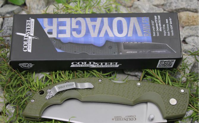 冷钢COLD大折刀海航家(绿色柄直刃) 全长:31.5cm 刃长:13.5 柄长:18cm 刃厚:0.4cm 刃宽:3.4cm 刃材:8CR13MOV 柄材:尼龙纤维 硬度:56-57HRC 净重:285克 (含包装) 锁定:背锁 表面处:石洗