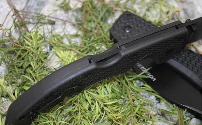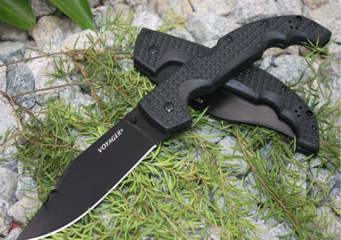 冷钢COLD大折刀海航家(黑柄黑色直刃) 全长:31.5cm 刃长:13.5 柄长:18cm 刃厚:0.4cm 刃宽:3.4cm 刃材:8CR13MOV 柄材:尼龙纤维 硬度:56-57HRC 净重:285克 (含包装) 锁定:背锁 表面处:黑色刃 其他:原厂彩合