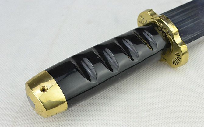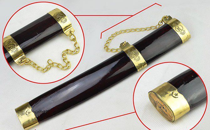 全长:44cm 刃长:31cm 刃宽:3.8cm 刃厚:0.75cm 刃材:弹簧钢 柄长: 12cm 重量:920克(含鞘) 鞘材:红木 装材:包铜 柄材:双铜头+黑牛角 硬度区间:60HRC 性能:手工精细研磨全开锋,削纸断竹、削发如泥、锋利无比。 备注:手工产品存在误差,规格仅供参考,请以实物为准!
