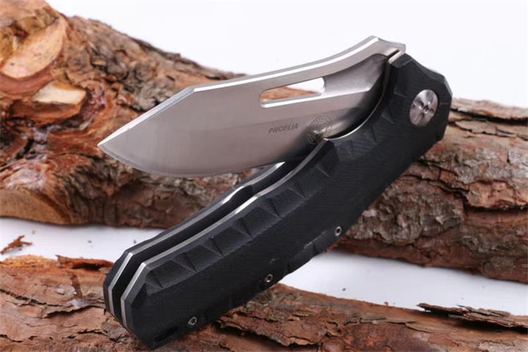 PROELIA-C178球轴承蟒蛇翻转折刀 全长:22.3cm 刃长:9.8cm 柄长:12.5cm 刃厚:0.38cm 刃宽:3.2cm 刃材:5CR15MOV 柄材:钢片+防滑G10 硬度:57-59HRC 净重:310克(含包装) 锁定:线锁 表面处:精细沙光 其他:原厂礼品盒