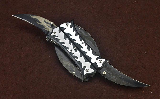 合体4刃折刀 全 长:27cm 刃 长:8cm 柄 长:12cm 全闭合合体柄宽:8cm 刃 宽:2.8cm 刃 厚:2.8mm 刃 材:3Cr13Mov 重 量:350g (含包装) 硬 度:56HRC 表 面:镀钛 柄 材:铝柄 锁 闭:线锁 其 他:纸盒包装 多刃