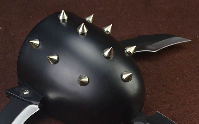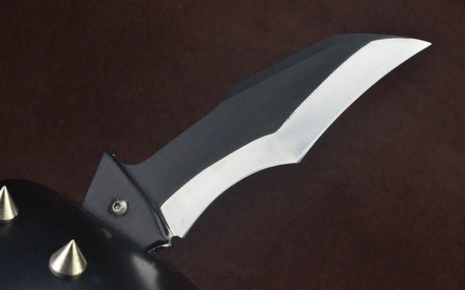 银河战士TA78拳盔铆钉三叉刀 全长:40.5cm 宽长度:37.5cm 刃长:25cm(长刃),12.5cm(短刃) 刃宽:5.3cm(长刃),4.5cm(短刃) 刃厚:4mm(长刃),3mm(短刃) 手柄:10cm 挡手:24.5cm 重量:1700克