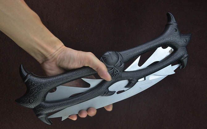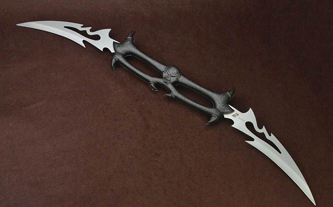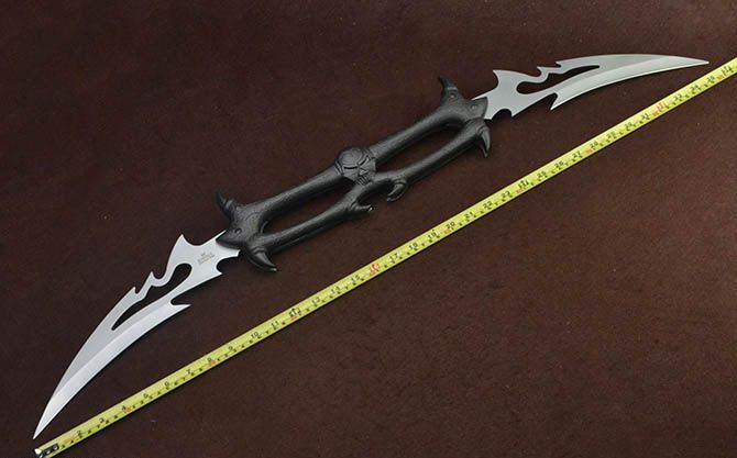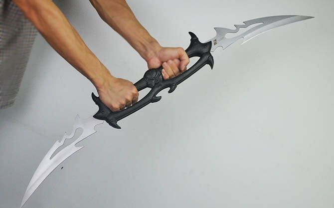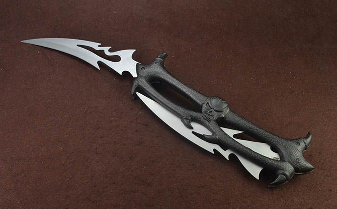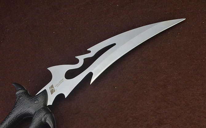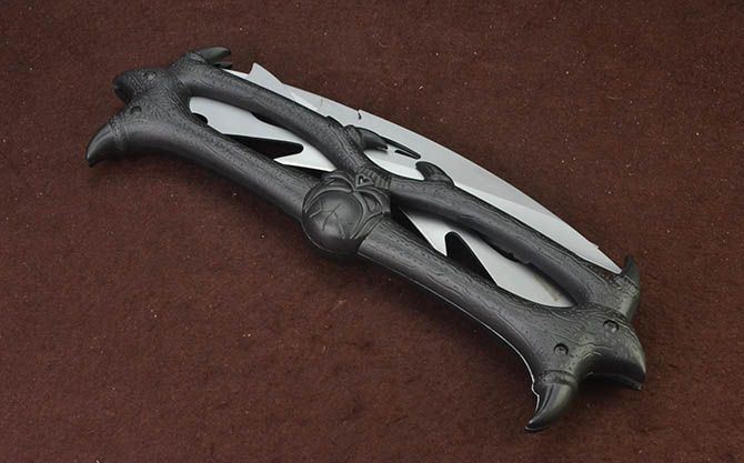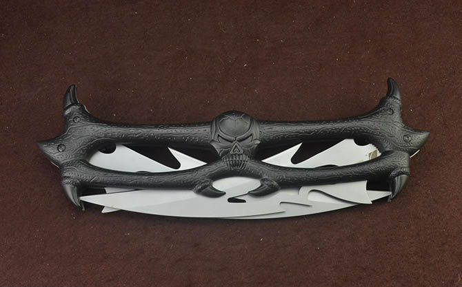 黑山老妖折叠双开大刀 全 长:90.5cm 刃 长:21.5cm 柄 长:37cm 刃 宽:6cm 刃 厚:2.5mm 刃 材:440 重 量:1150g(含包装) 硬 度:56HRC 表 面:灰钛 柄 材:合金 锁 闭:线锁