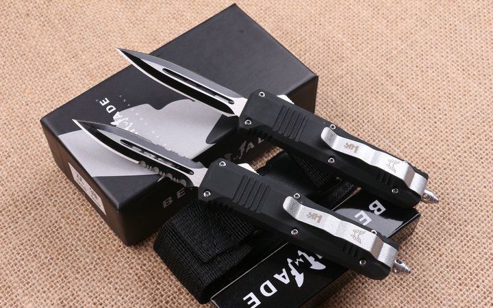 Mini迷你C07小蝴蝶直跳刀 全 长: 17.8cm (含尾锥长度) 刃 长: 7.2cm 刃 厚: 2.9mm 刃 材: 440 硬 度: 57HRC 刀净重:125.0克 总重量:200.0克(含包装物) 表 面: 黑白(刀刃) 柄 材: 锌铝合金 刀 鞘: 尼龙 锁 闭: 弹簧直出 备 注: 带背夹和玻璃撞针+尼龙套