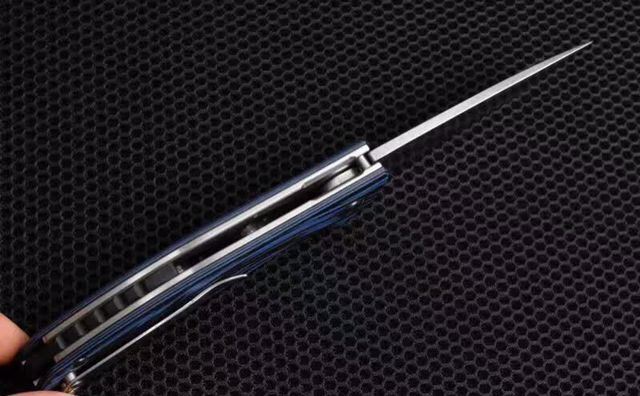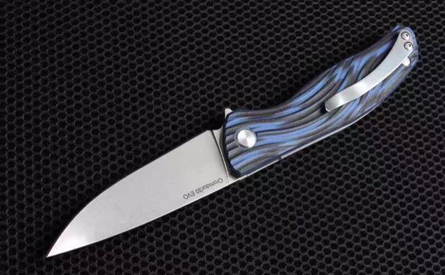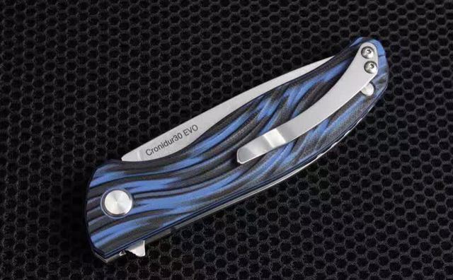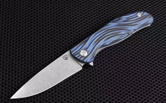 Shirogorov熊头高品质大熊折刀(蓝焰柄、石洗刃) 全长:225mm 刃长:100mm 柄长:130mm 刃宽:30mm(最宽处) 刃厚:4mm 刃材:918 净重:195g 硬度:58HRC 表面:石洗 柄材:G10 刀夹:不锈钢 螺丝:不锈钢 结构:线锁