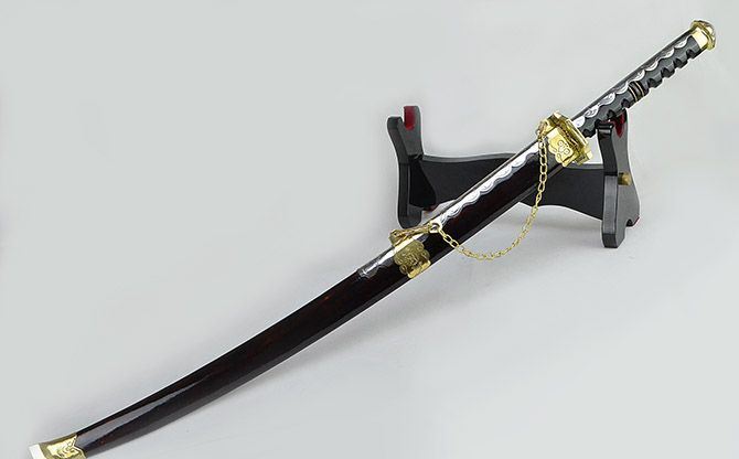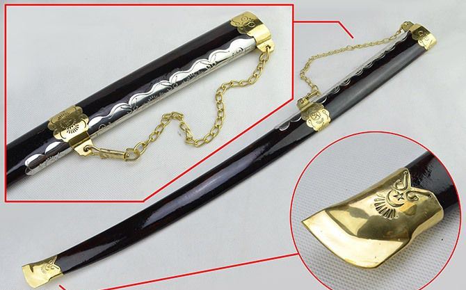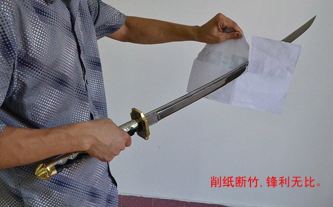 全长:94cm 刃长:68cm 刃宽:3.1cm 刃厚:0.7cm 刃材:弹簧钢 柄长: 25cm 重量:1600克(含鞘) 鞘材:木+鞘背包铜 装材:铜+钢 柄材:铜+钢+牛角 硬度区间:60HRC 性能:手工精细研磨全开锋,削纸断竹、锋利无比。 备注:手工产品存在误差,规格仅供参考,请以实物为准!