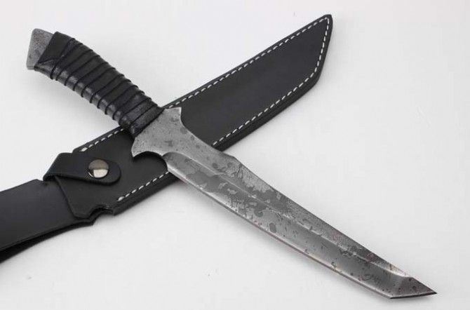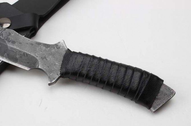 ZT工坊僵尸武士直刀 全 长:350mm 刃 长:210mm 柄 长:120mm 刃 宽:34mm 刃 厚:5.5mm 刃 材:9Cr18Mov 重 量:554g(含包装) 硬 度:58HRC 表 面:腐蚀纹 柄 材:一体钢+扎皮 锁 型:定锁 其 他:皮套