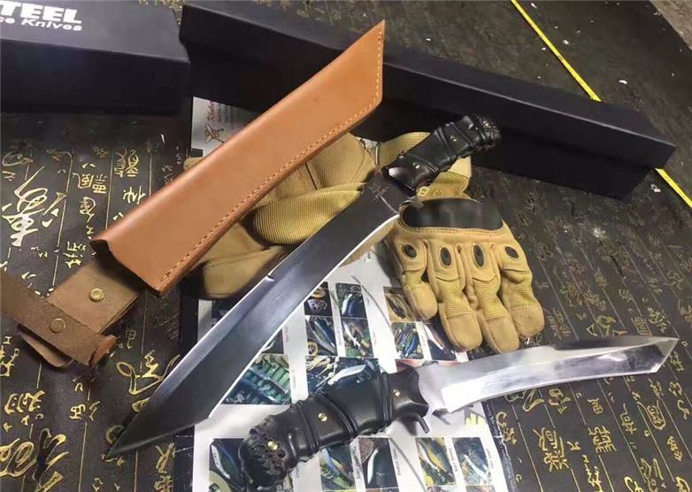 加长版Fox千年狐狸狩猎刀(超镜面) 全长:38CM 刃长:26CM 柄长:11.5CM 刃材:9Cr17 硬度:59HRC 刃厚:0.59CM 刃宽:3.3CM (最宽处) 刀刃表面:镜光 柄材:黑檀木,电脑雕刻防滑格纹 刀鞘:皮套(配硬盒)