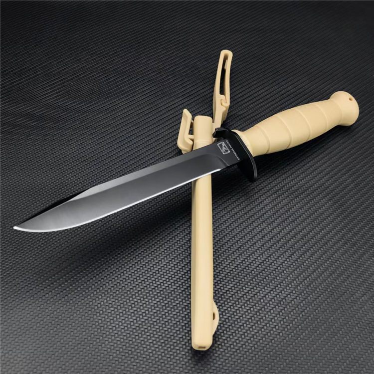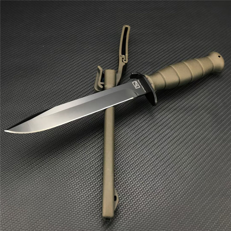 精仿奥地利格洛克78式军用刀(黄泥色、深绿色柄) 全长:28.7CM 刃长:16.5CM 刃宽:2CM 刃厚:4MM 刃材:8Cr13Mov 柄长:12.2CM 柄材:PP工程塑料 刀重量:188G 总重量:262G(含鞘)