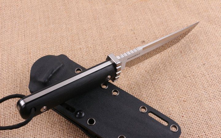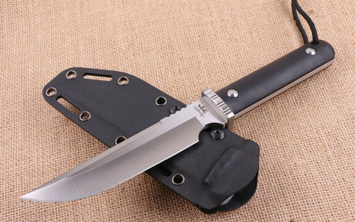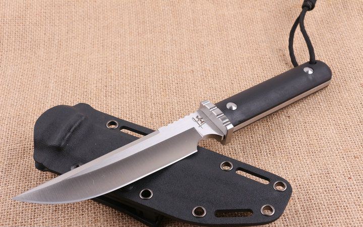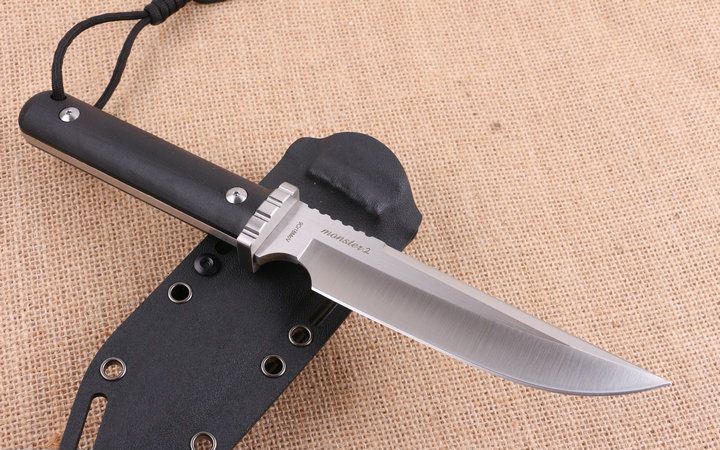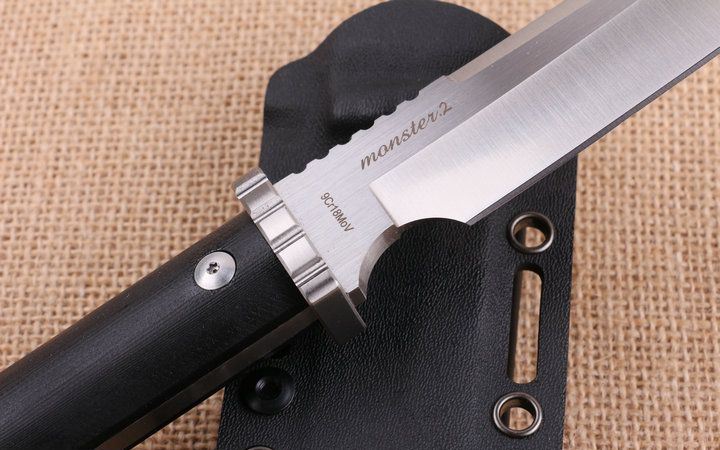 刀圣海怪直刀 全 长:27.0cm 刃 长:15cm 柄 长:12.0cm 刃 宽:3.0cm 刃 厚:5.0mm 刃 材:9CR8MOV 重 量:520g(含包装) 硬 度: 60HRC 表 面:精细沙光 柄 材:刀身一体龙骨,黑色G10+方型加厚钢头 锁 型:直锁 其 他:礼品盒+K鞘