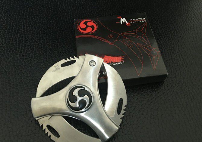 单层带双小飞镖风火轮 直 径:10.0cm 刃 长:5.5cm 刃 厚:3.0mm 刃 材:440 硬 度:56HRC 刀 柄:不锈钢 表 面:砂光 锁定方式:侧锁 重 量:300克(含包装) 备 注:带双小飞镖 包 装:彩盒
