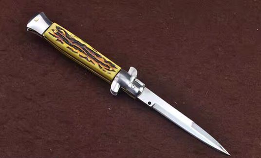 意大利黑手党经典侧跳(仿骨普通版) 全 长:22.9CM 刃 长:10.2CM 柄 长:325MM 刃 厚:3.0mm 刃 材:440 刀 柄:仿骨柄 开刀方式:弹簧 重 量:150克 枪刺刃的黑手党侧跳,力克柄,弹力超强,锁定到位,刃镜面,带有保险装置,刀护手处暗藏闭合开关,出口产品,质量保证!满足把玩和收藏需要