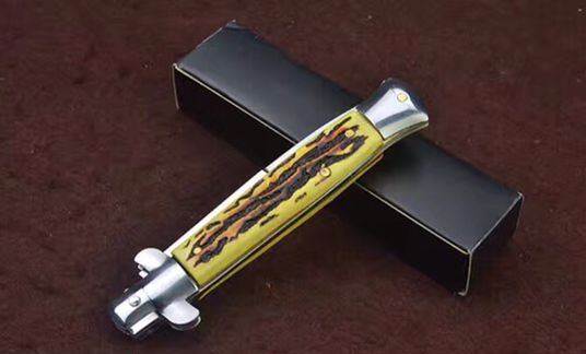 意大利黑手党经典侧跳(仿骨普通版) 全 长:22.9CM 刃 长:10.2CM 柄 长:325MM 刃 厚:3.0mm 刃 材:440 刀 柄:仿骨柄 开刀方式:弹簧 重 量:150克