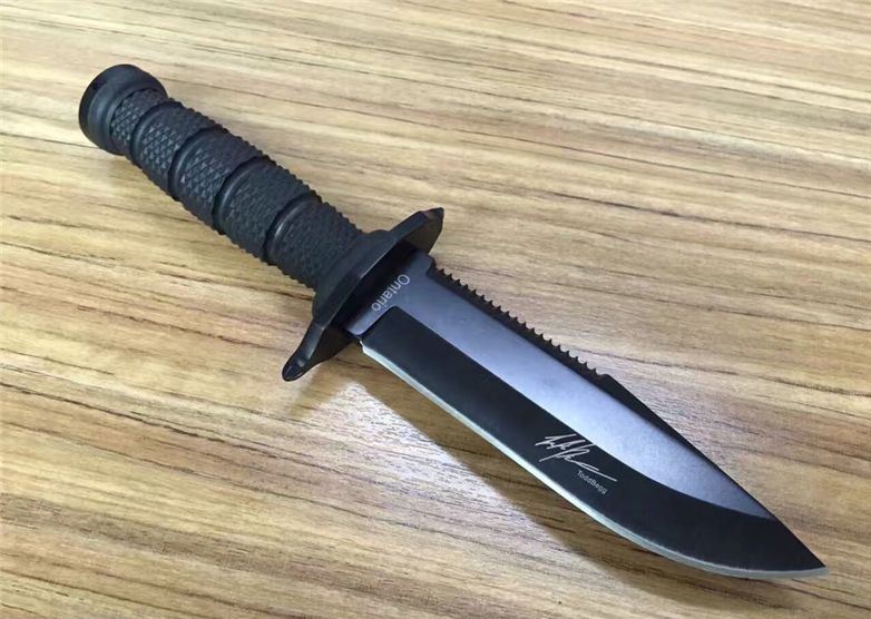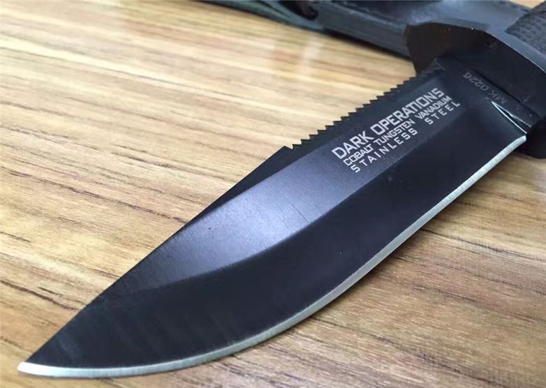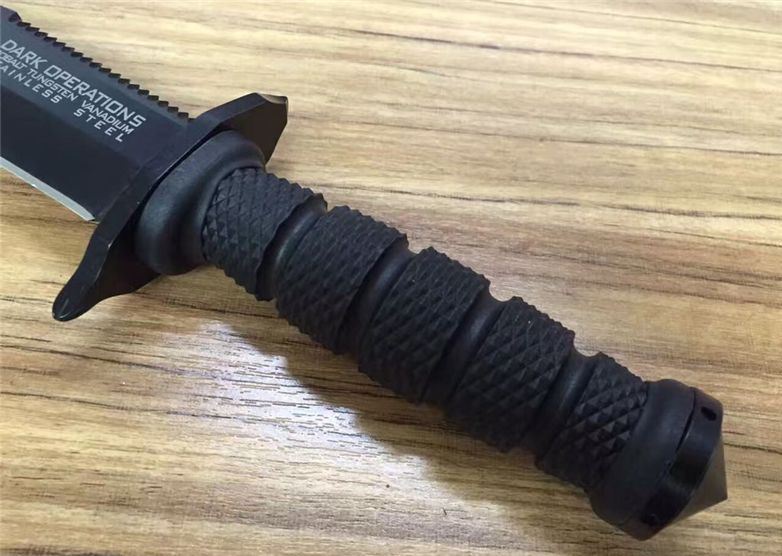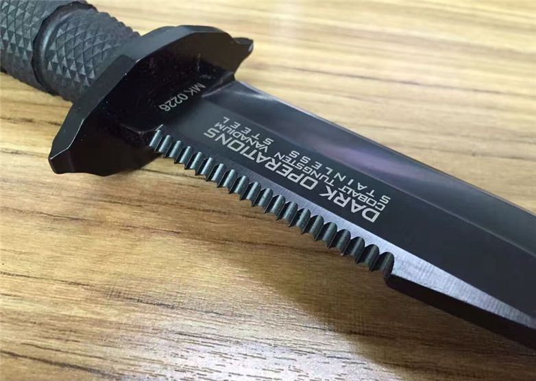 铁血小直刀 全 长:270mm 刃 长:135mm 柄 长:135mm 刃 宽:37mm 刃 厚:5.0mm 刃 材:7Cr13Wov(汽车弹簧钢手工锻打) 重 量:352g(含包装) 硬 度:58HRC 表 面:氧化黑 柄 材:特制ABS 锁 型:定锁