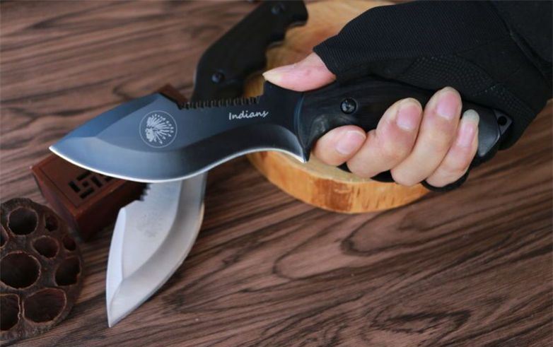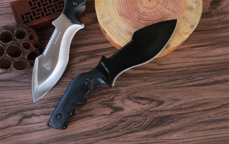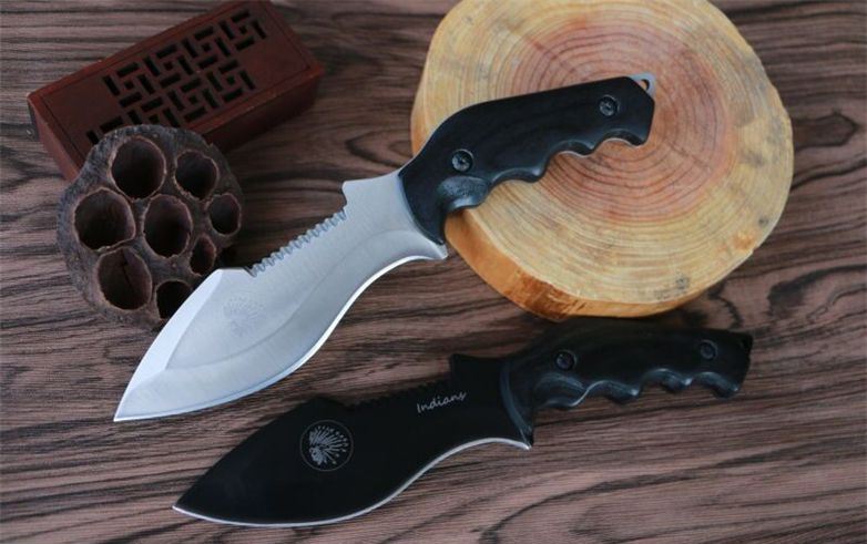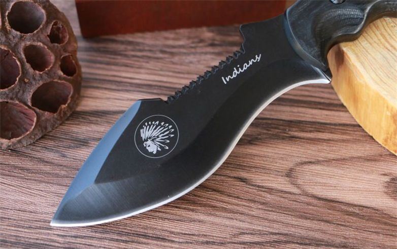 夜魔印第安直刀 全长:24cm 柄长:11cm 刃长:13cm 钢材:8CR13MOV 刃厚:4mm 刃宽:4.5cm 重量:净重220g
