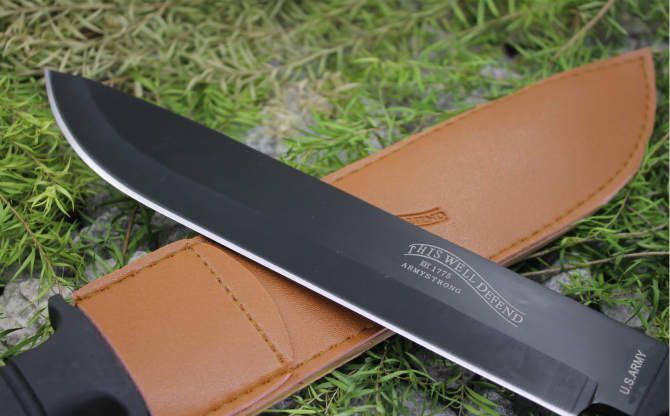 华尔特陆军三色户外直刀 全 长:37cm 刃 长:25.0cm 柄 长:12.0cm 刃 宽:4.8cm(最宽处) 刃 厚:3.7mm 刃 材:440 硬 度:55HRC 刀 柄:软塑柄 表 面:砂光 发黑 重 量:600.0克 备 注:带皮套